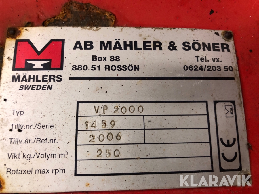 Boka frakt? Det finns ingen specifik information om frakt för just det här objektet, men om du skickar oss en förfrågan via vårt fraktformulär, så undersöker vi möjligheten. Paket, EU-pall eller större maskin? Klaravik har fraktavtal med Schenker och i de fall vi kan hjälpa till med frakt gäller det objekt som ryms i paket eller inom en EU-pall (upp till 120*80 cm och 990 kg). Det går att beställa frakt inom Sverige, dock inte till utlandet. Vid frakt på större maskiner rekommenderar vi gärna transportföretag som du kan kontakta.