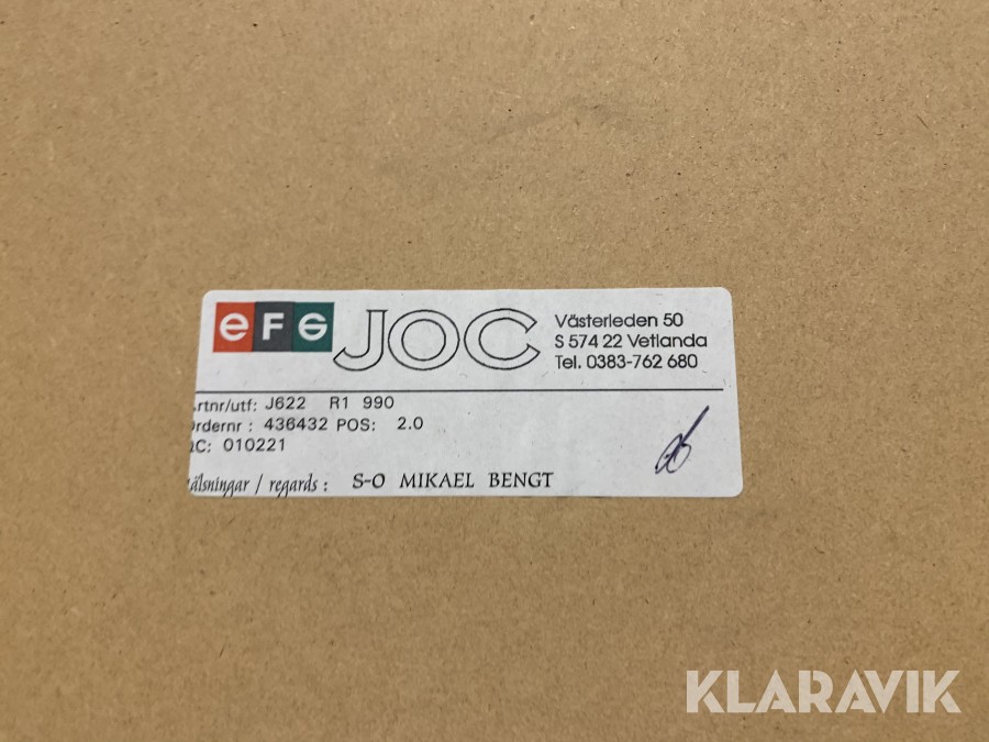 Boka frakt? Det finns ingen specifik information om frakt för just det här objektet, men om du skickar oss en förfrågan via vårt fraktformulär, så undersöker vi möjligheten. Paket, EU-pall eller större maskin? Klaravik har fraktavtal med Schenker och i de fall vi kan hjälpa till med frakt gäller det objekt som ryms i paket eller inom en EU-pall (upp till 120*80 cm och 990 kg). Det går att beställa frakt inom Sverige, dock inte till utlandet. Vid frakt på större maskiner rekommenderar vi gärna transportföretag som du kan kontakta.
