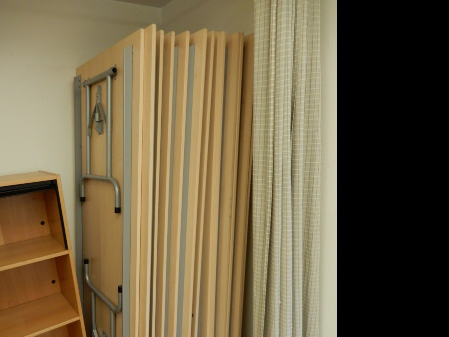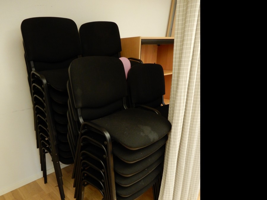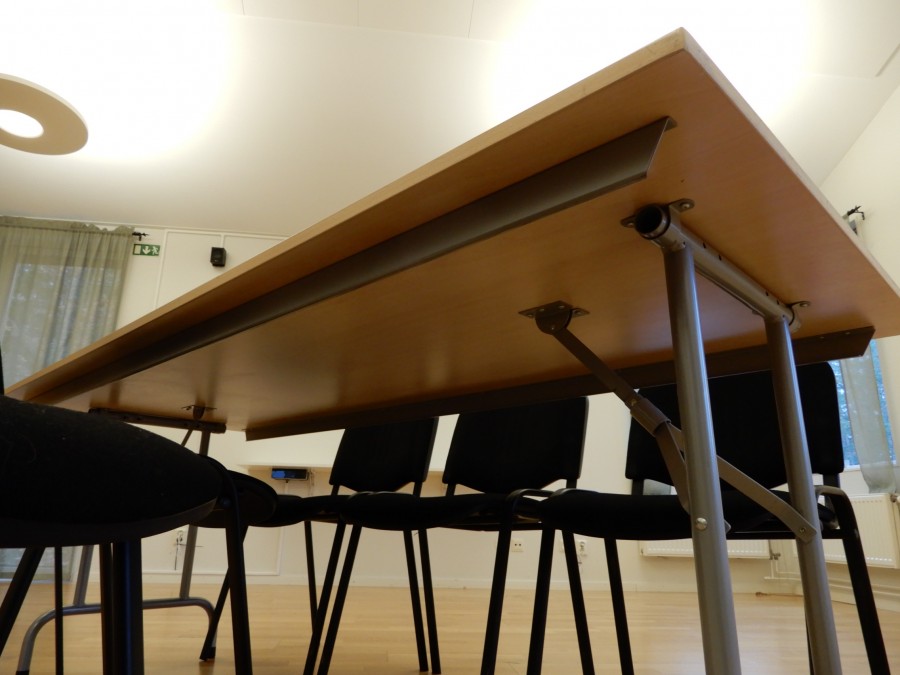 14st fällbara bord 200x80cm, 35st stapelbara stolar (tygsits/rygg).