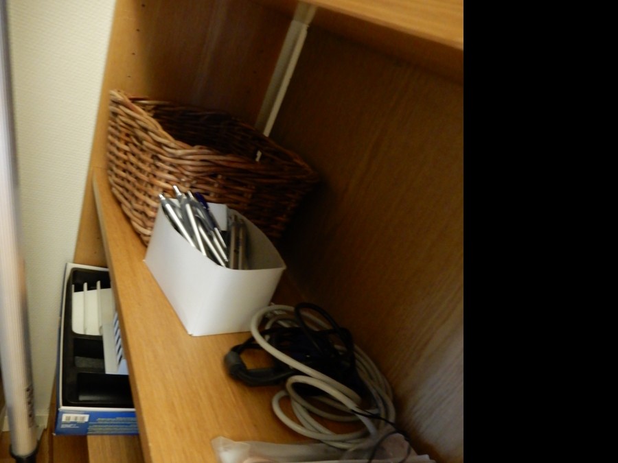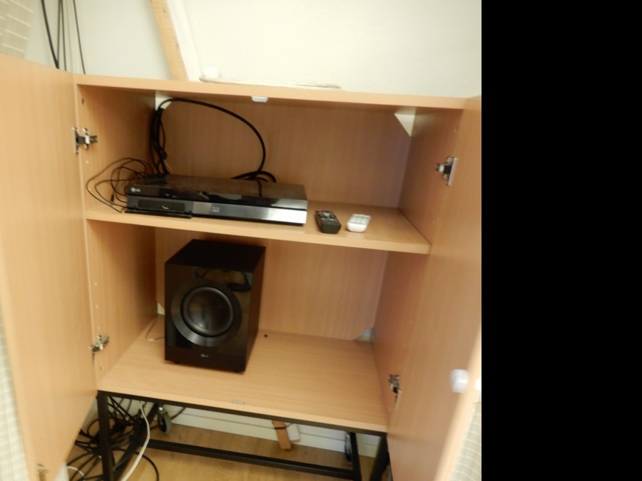 2st mindre skåp, ett på hjul, bokhylla.