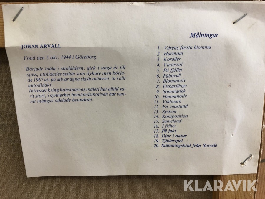 Konst JOHAN ARVALL, Olja på duk, signerad.