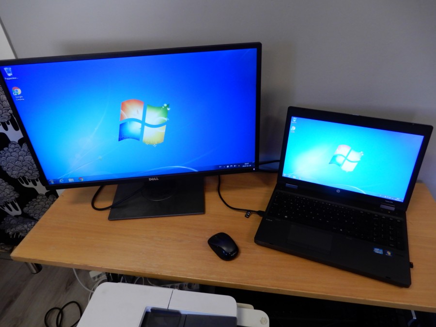 Laptop-paket med bra arbetsdator, extern 27-tumsskärm, Multiskrivare samt trådlöst mus.