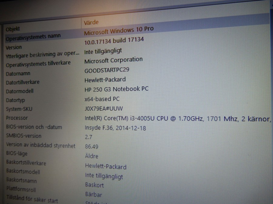 Win 10 Pro, återställd.