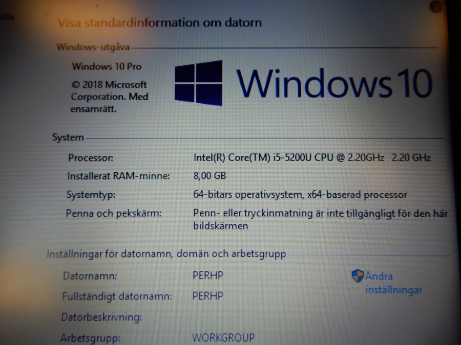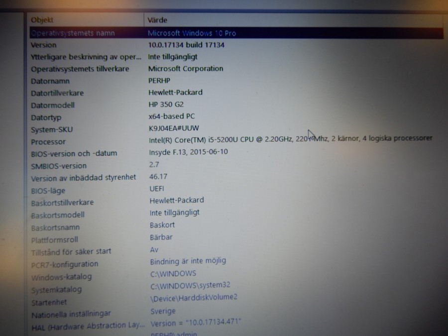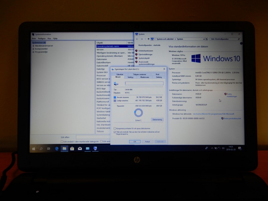 Win 10 Pro, klar för drift.