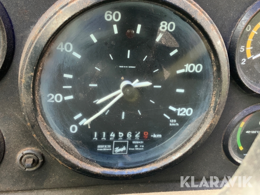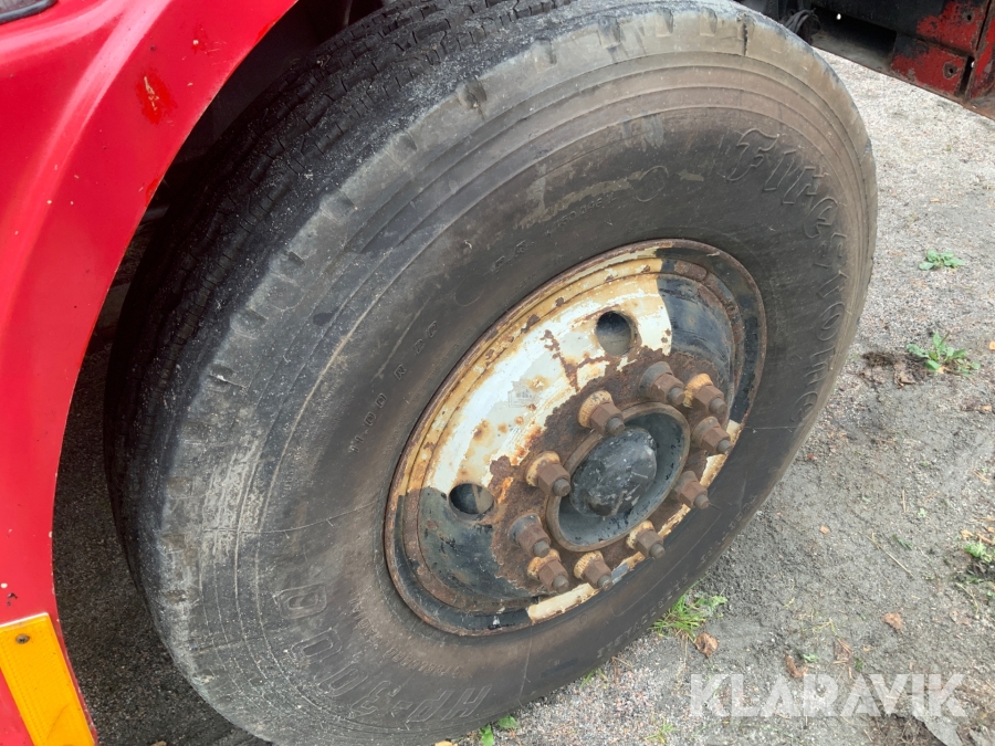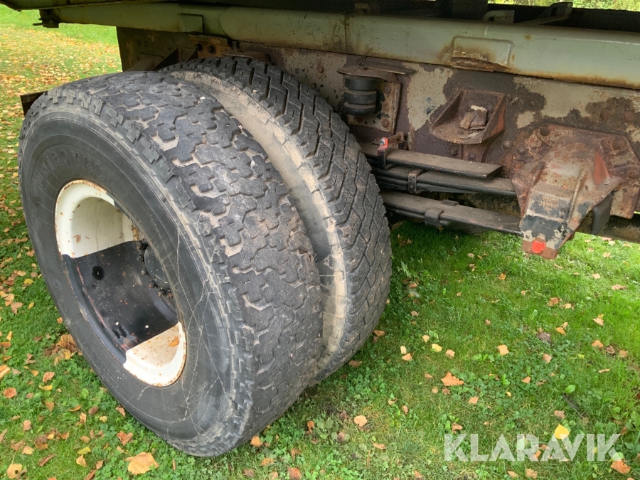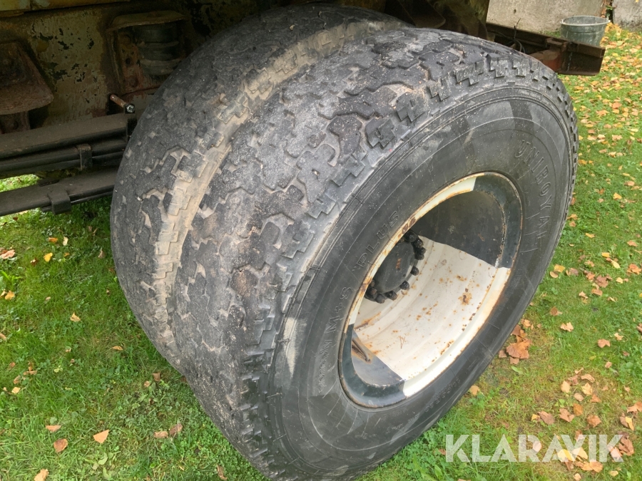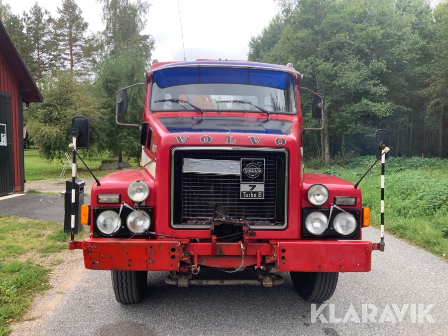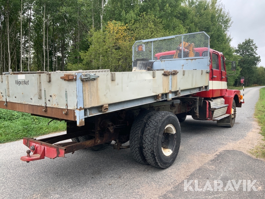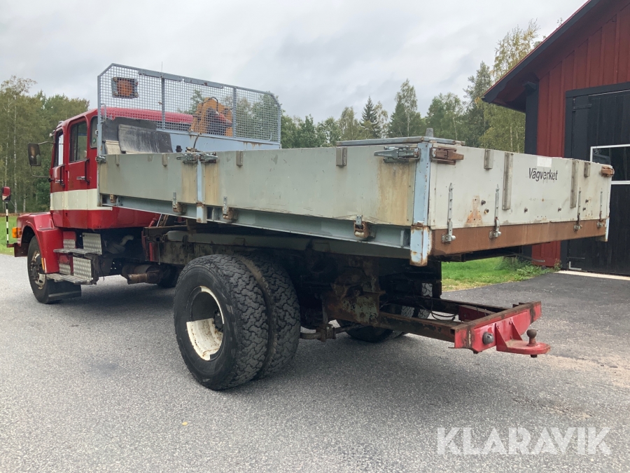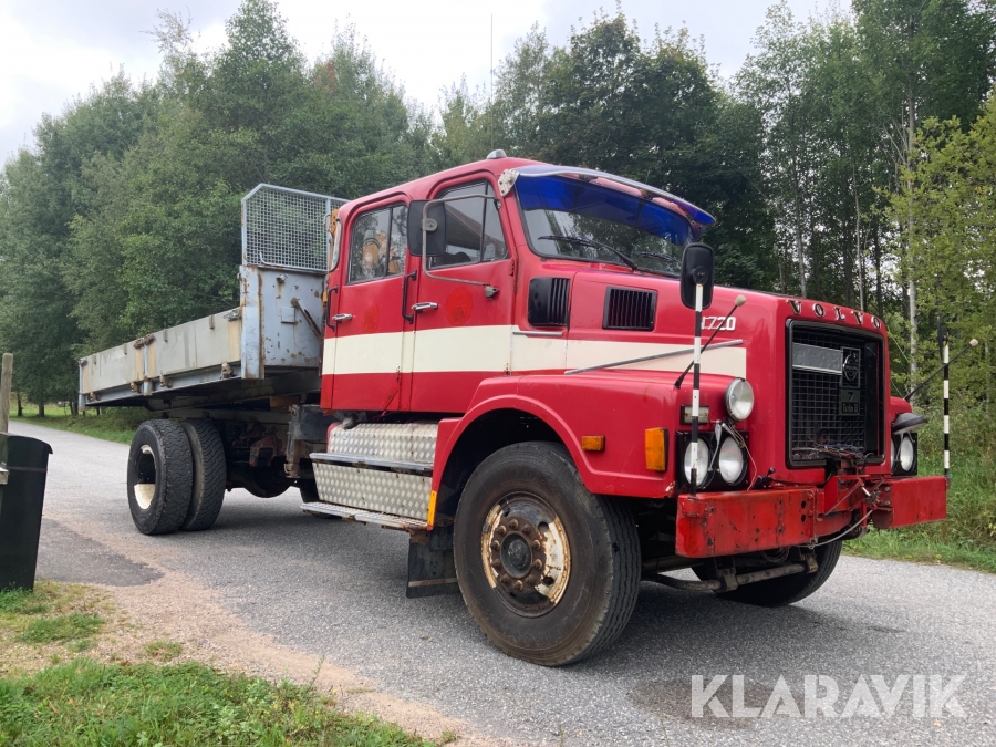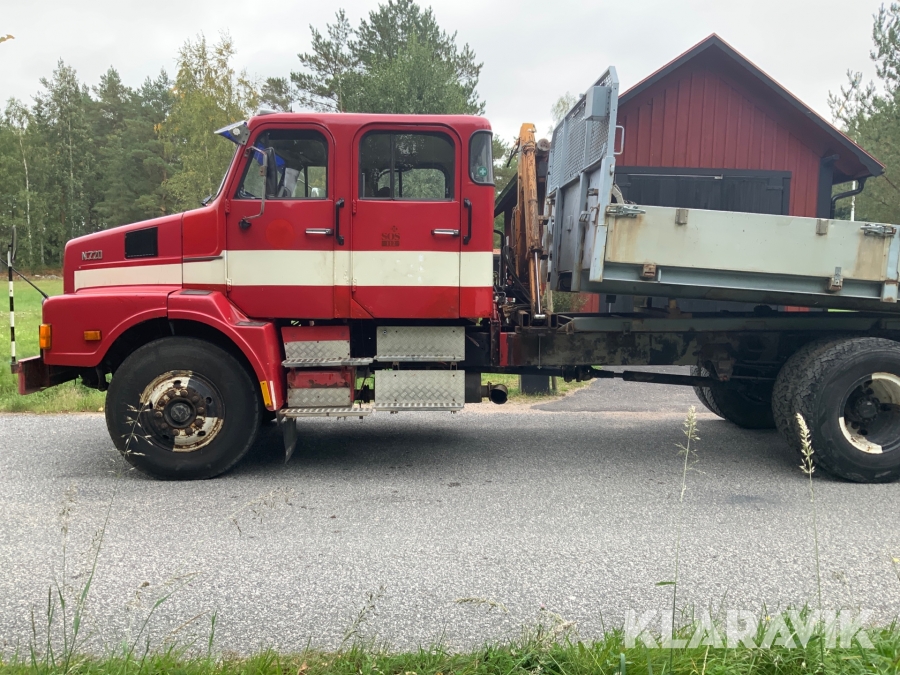 Lastbil Volvo N720 med kran och tippflak