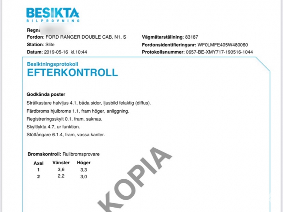 • Serie/chassinummer framgår