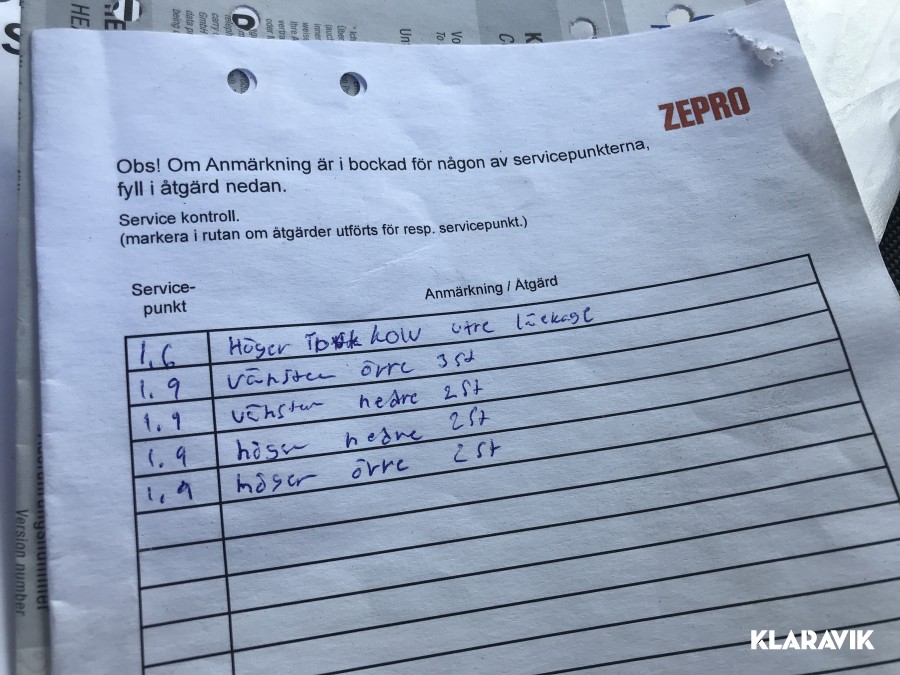 Sevicebok saknades vid testillfället men lösa blad finns