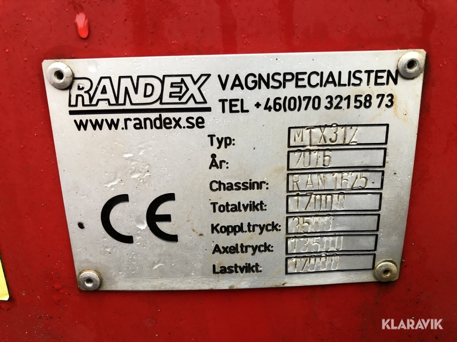 Maskintrailer Randex till traktor