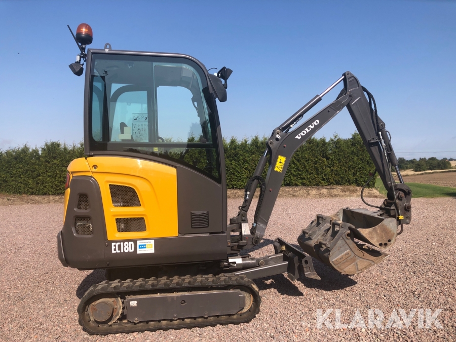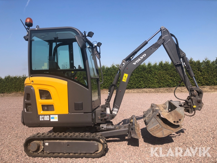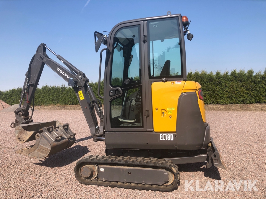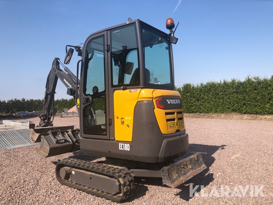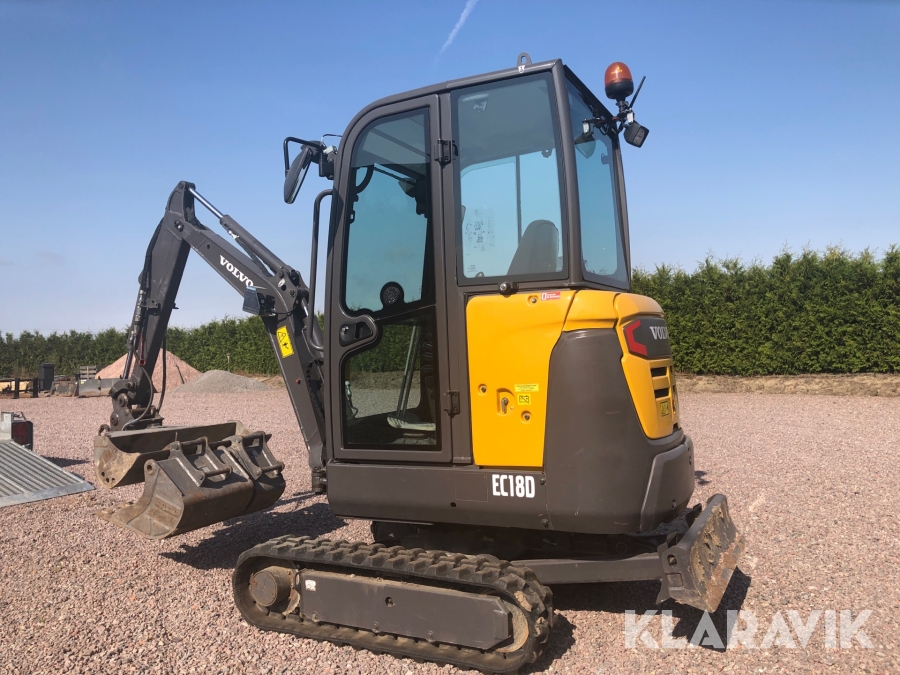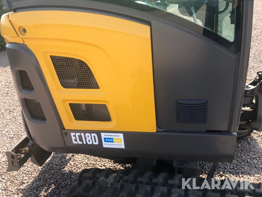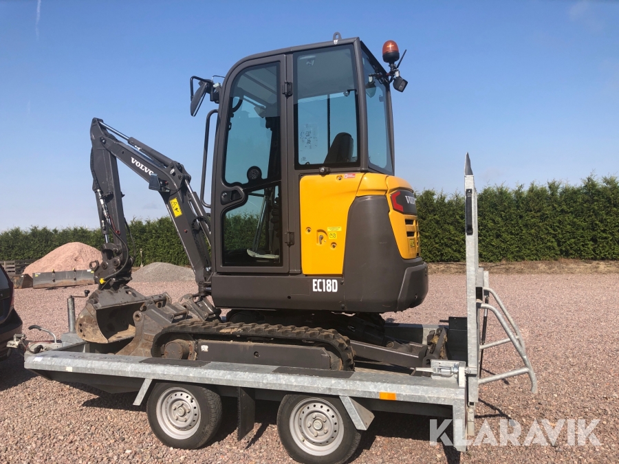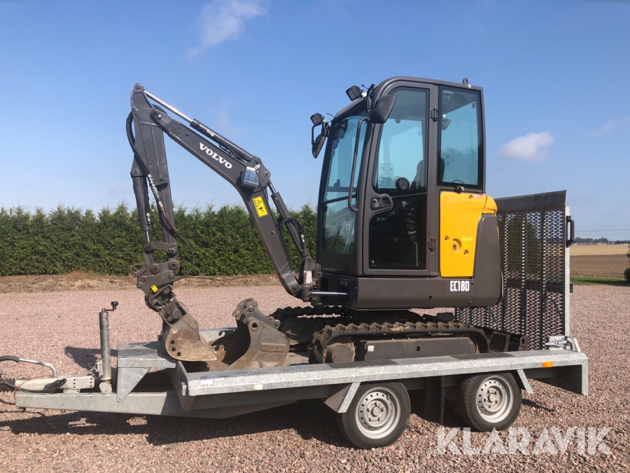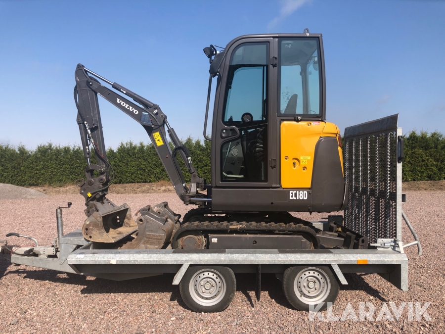 Minigrävare Volvo EC18D med tillbehör och maskinsläp
