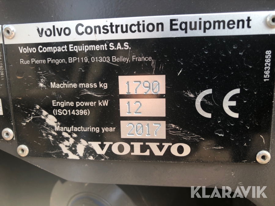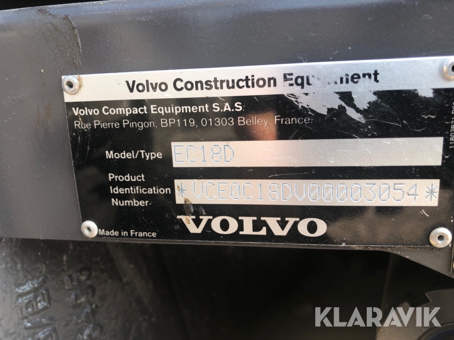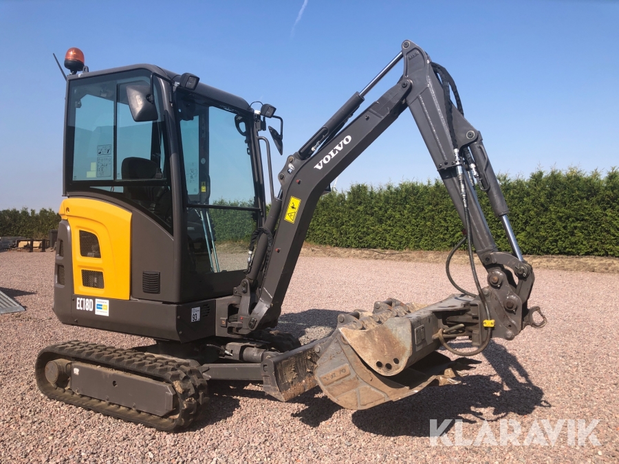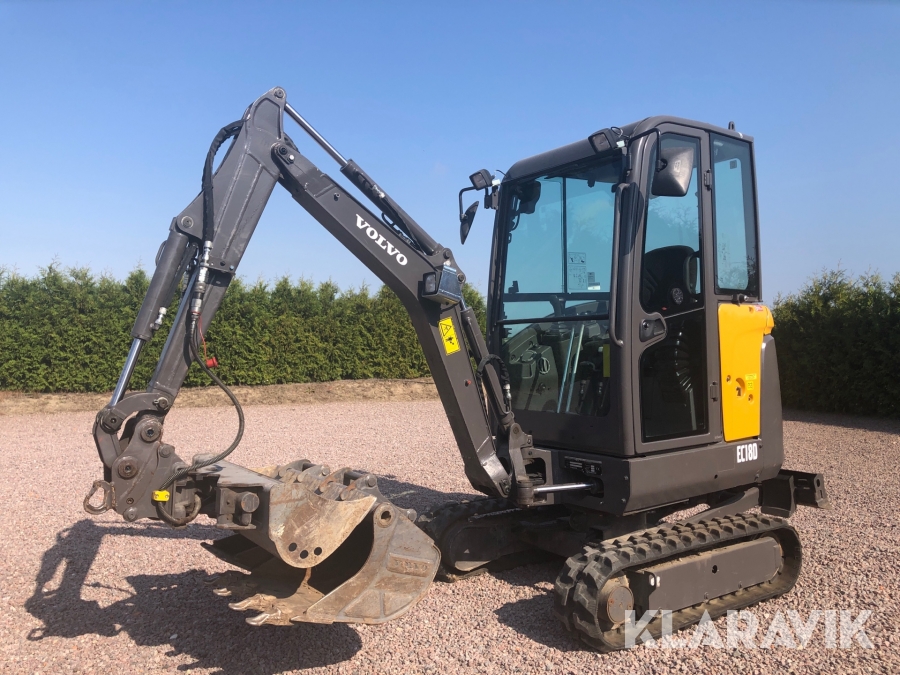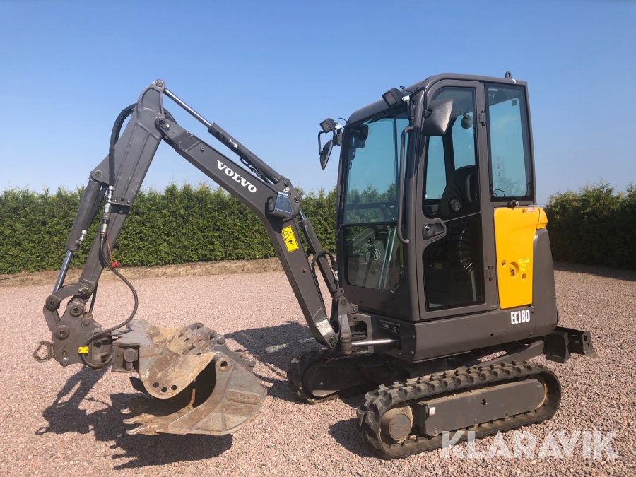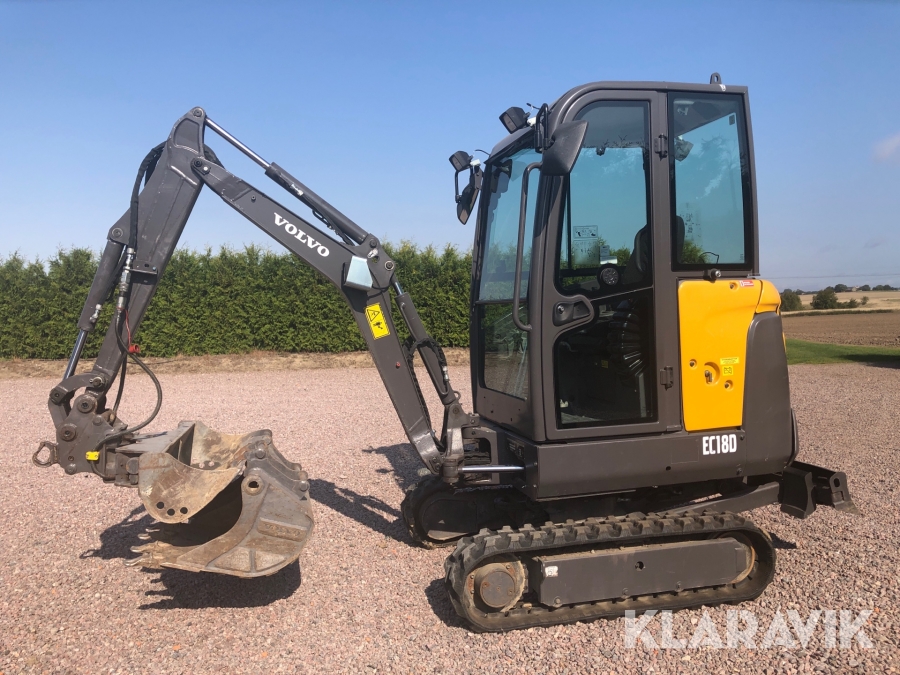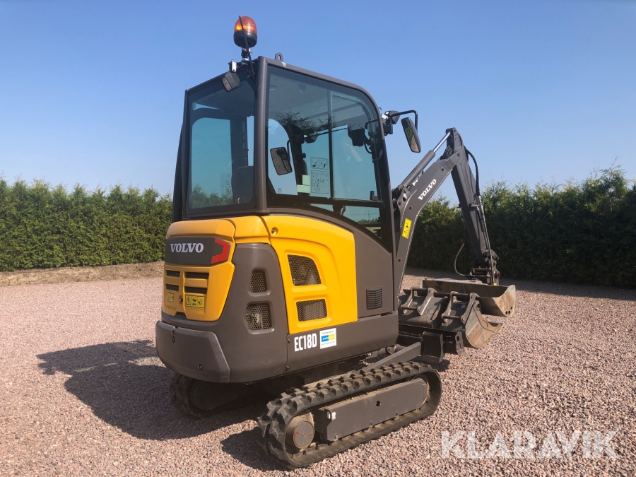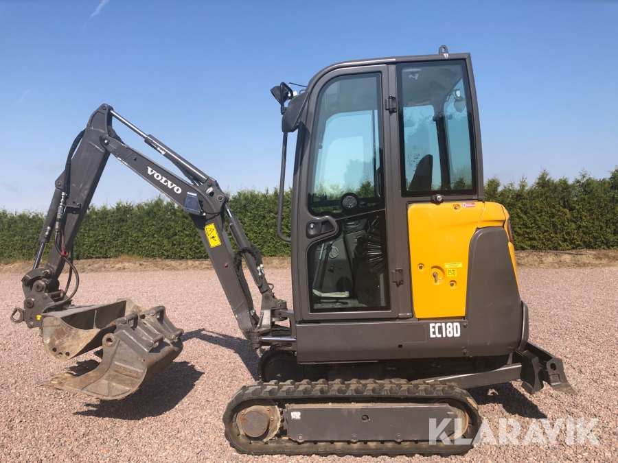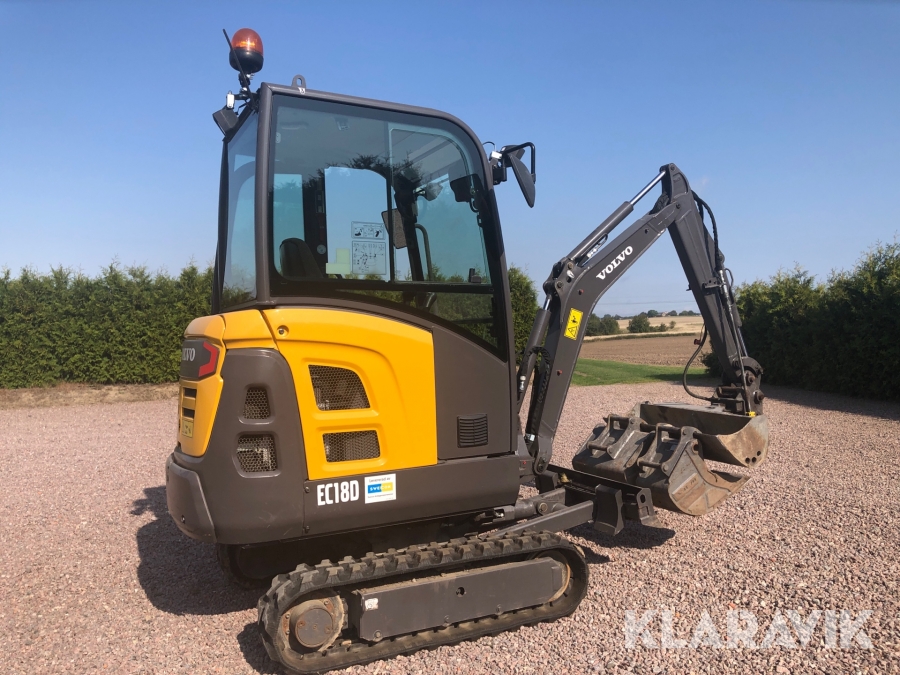 Minigrävare Volvo EC18D med tillbehör och maskinsläp