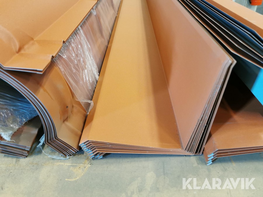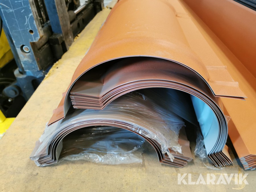 Nockplåt tegelprofil, ränndalsplåt försänkt, ståndskiva, vindskivebeslag
