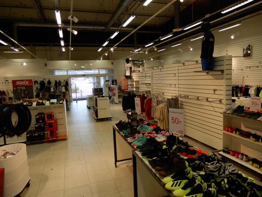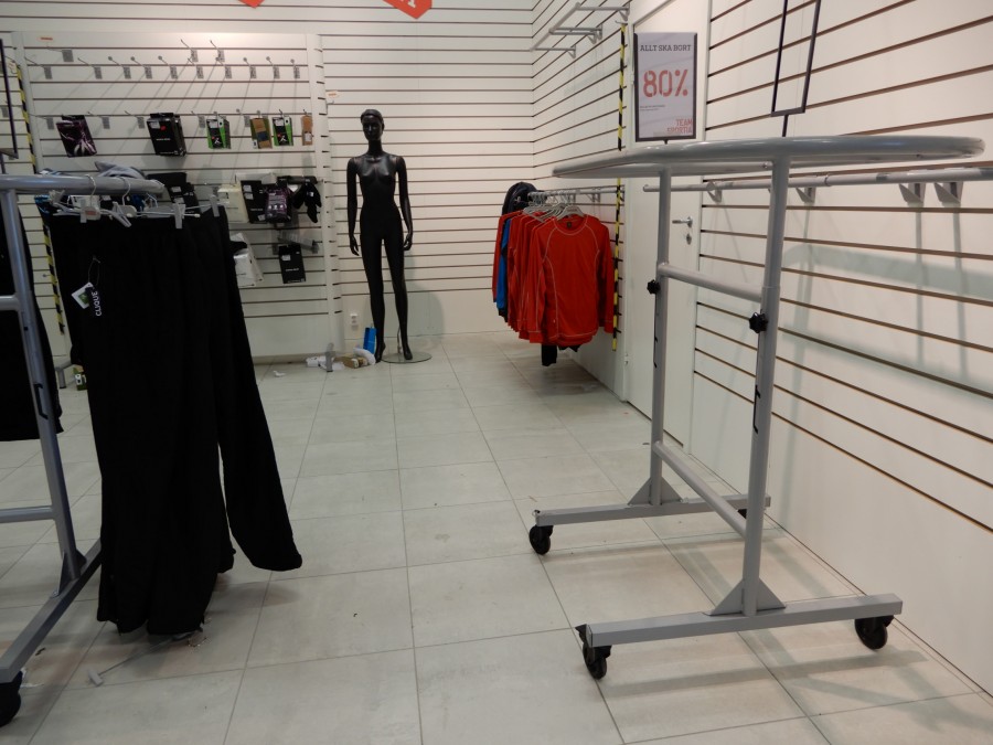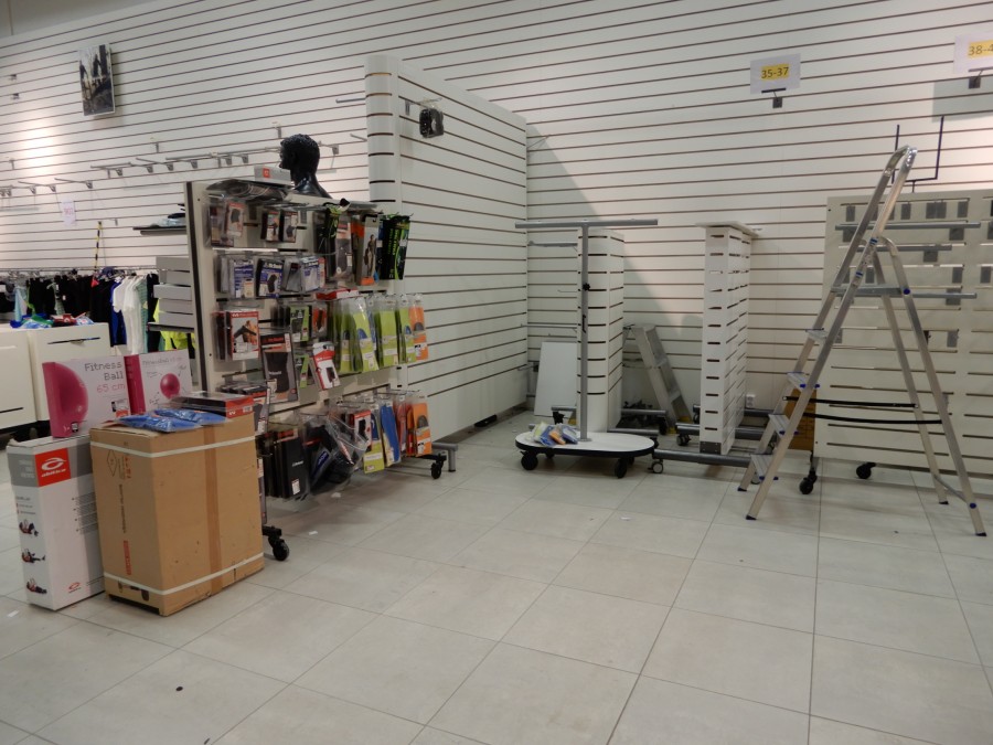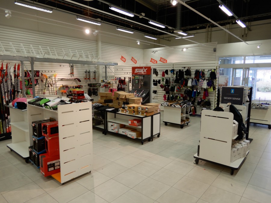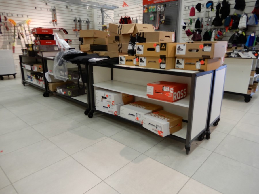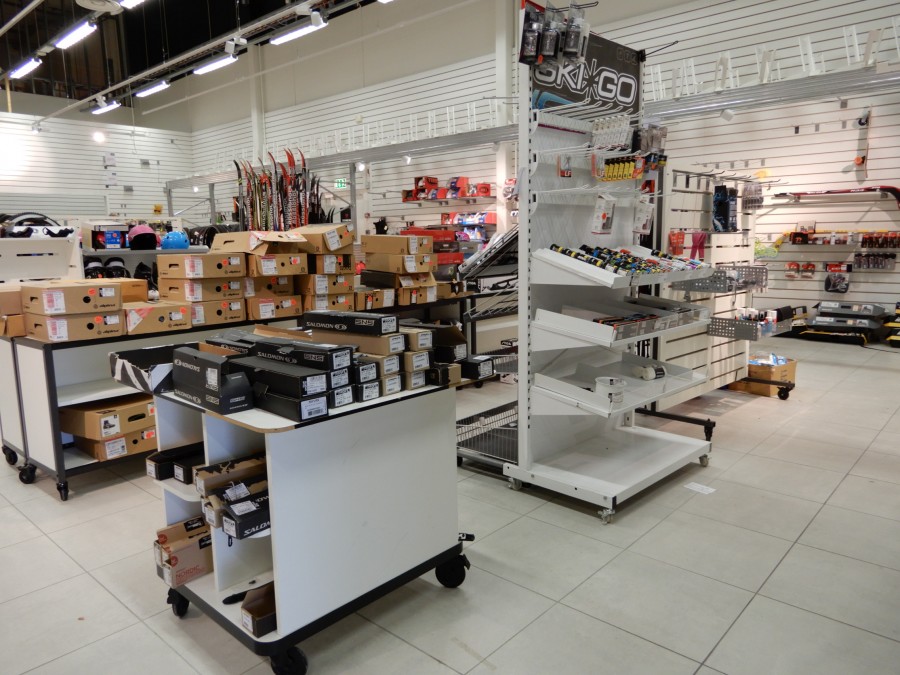 Stort parti butiksinredning från fd.sport o fritidsbutik.