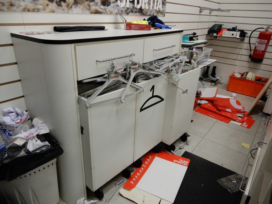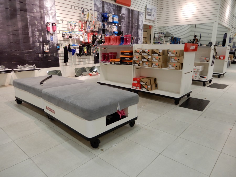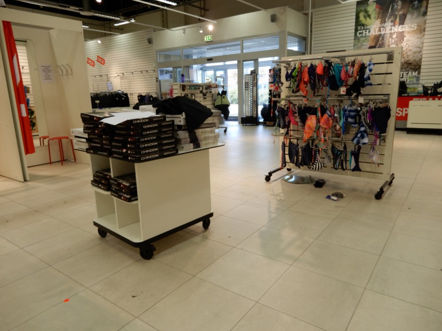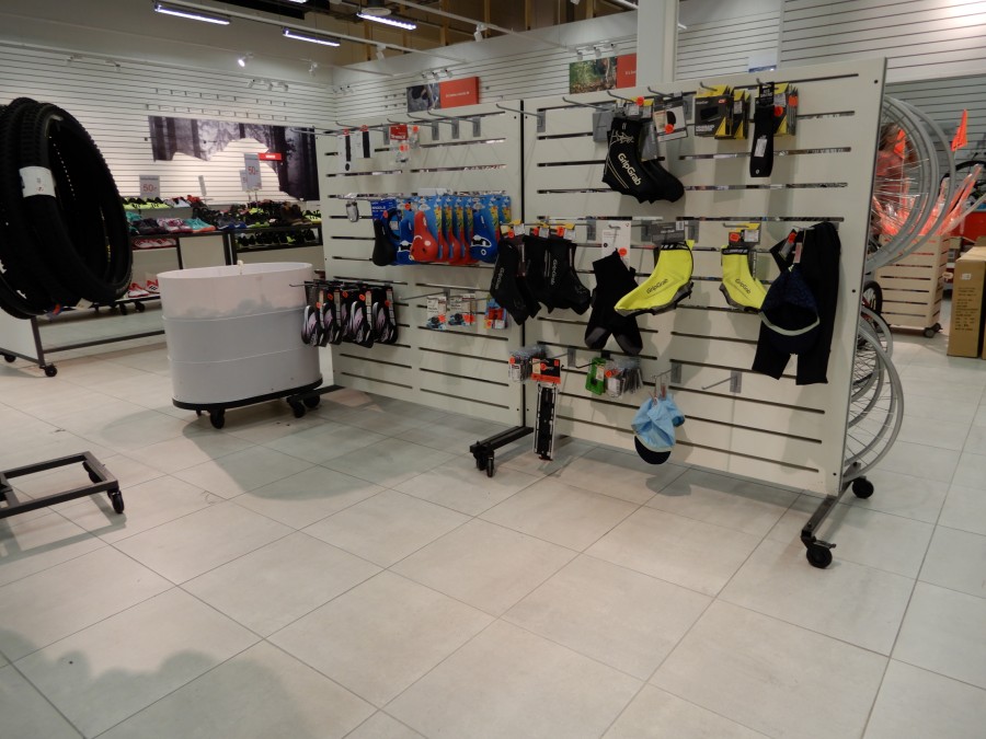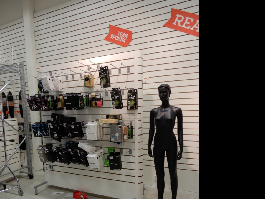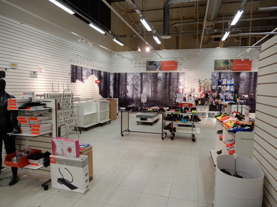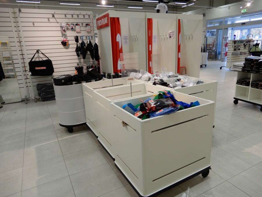 Stort parti butiksinredning från fd.sport o fritidsbutik.