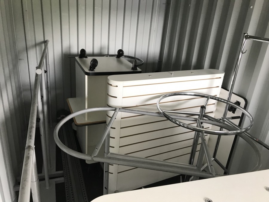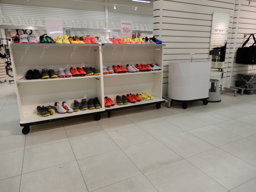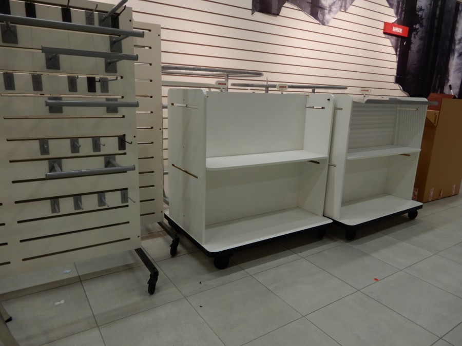 Ca.9st Butiks-Gondol stor 130x150cm, Ca.8st Butiks-Gondol liten 70x150cm – på hjul.