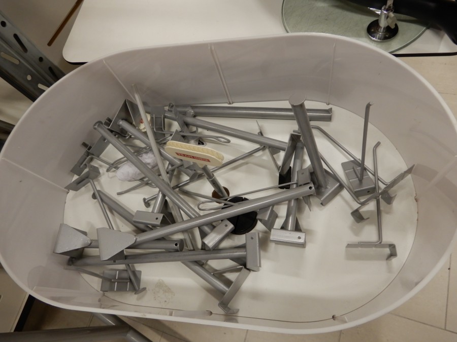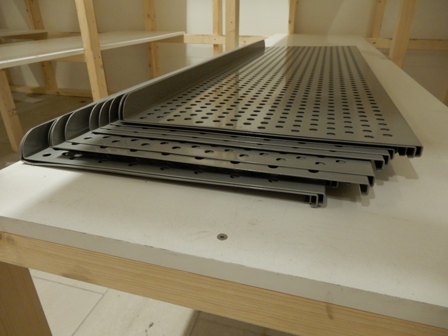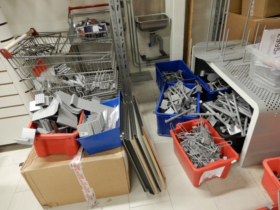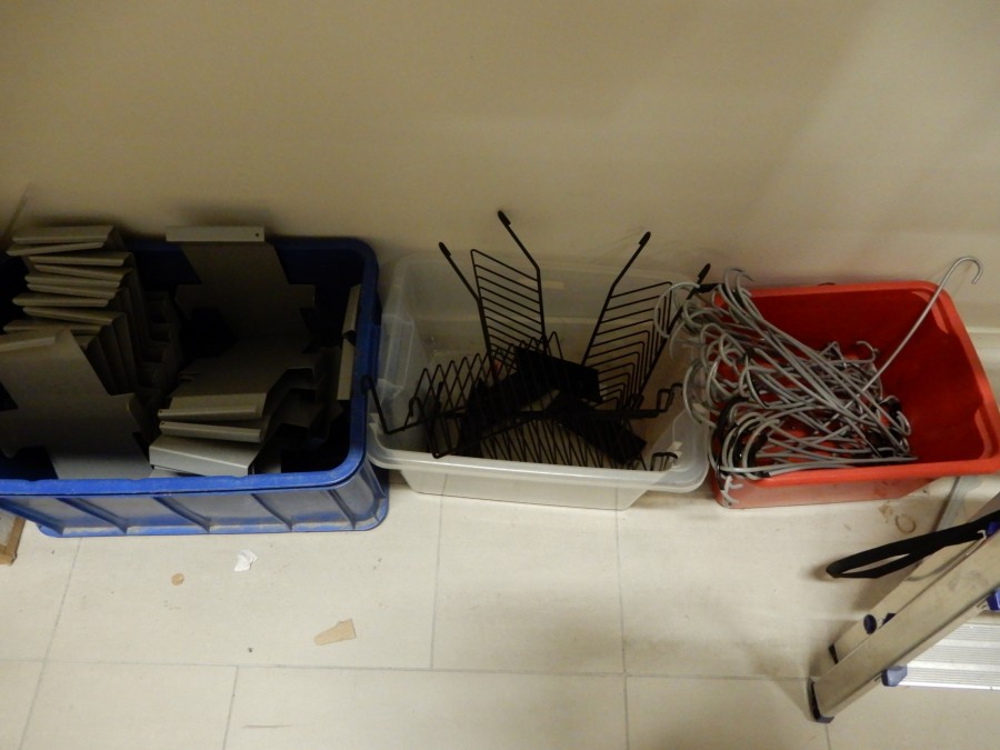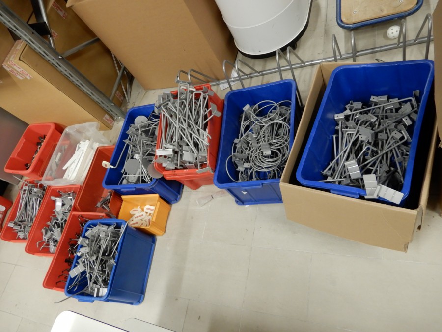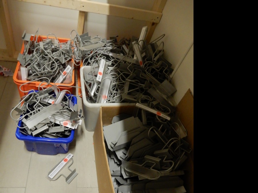 Mängder med krokar, fästen, hängare, hyllplanfästen och hyllor. Etc etc.