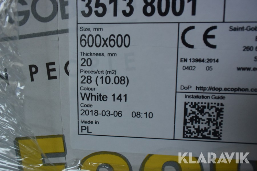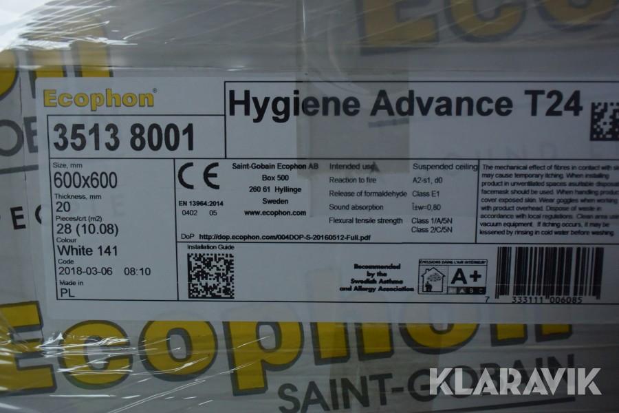 Parti med akustikplattor Ecohhon Hygiene Advance T24