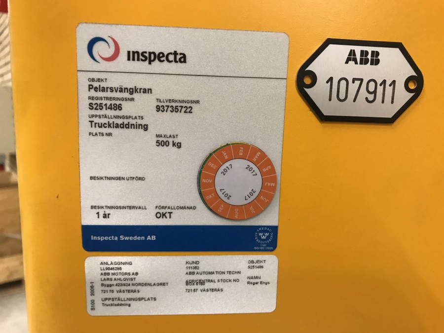 Pelarsvängkran med telfer 500 kg