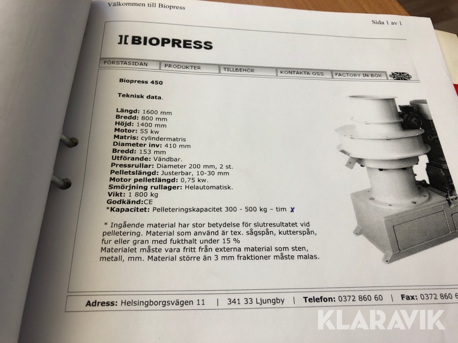 Komplett Pelletsmaskin / Pelletspress Biopress 450 med paketeringsanläggning, silosar och spånbehållare