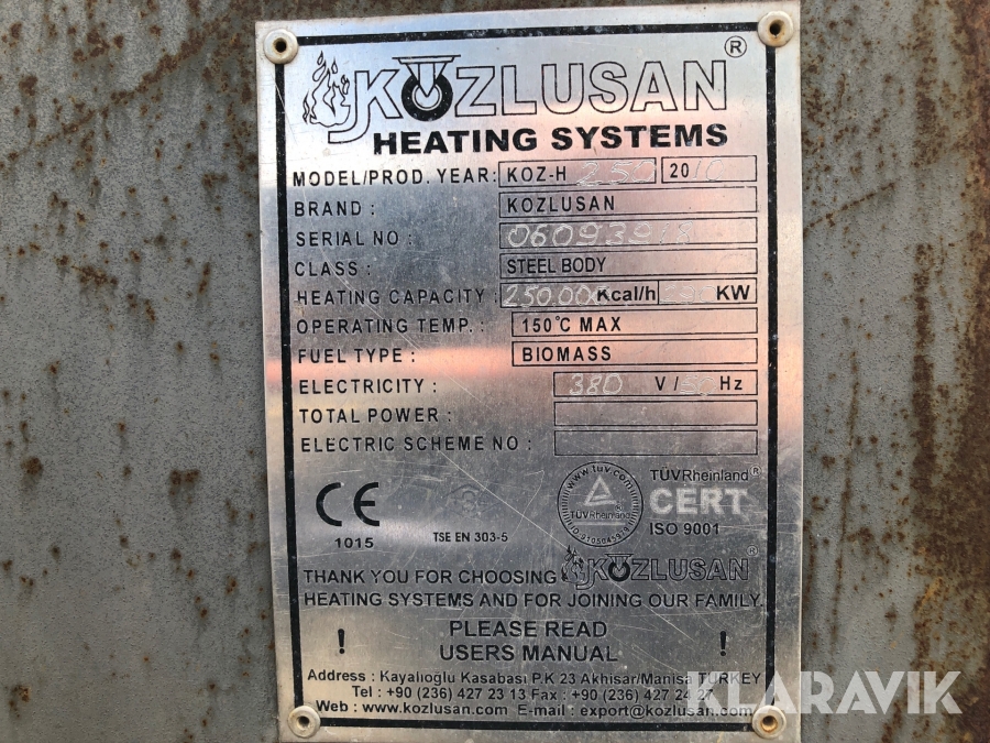 Varmluftspanna Kozlusan heating systems Kuz-h 250 pellets 290kW