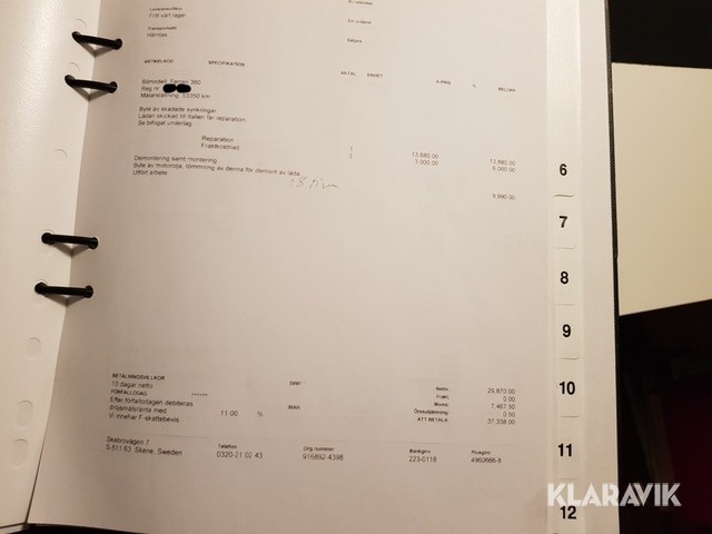 • Serie/chassinummer framgår