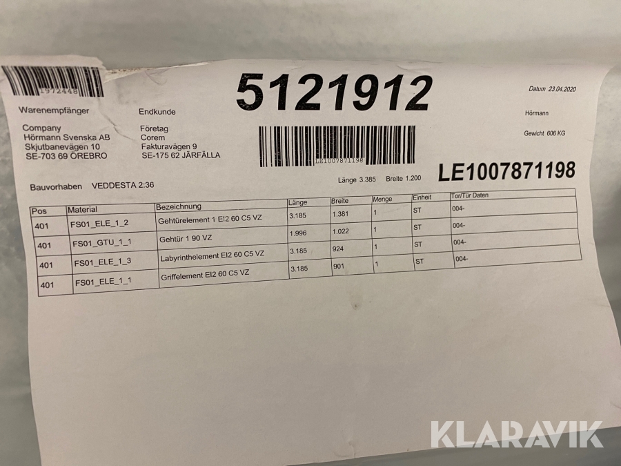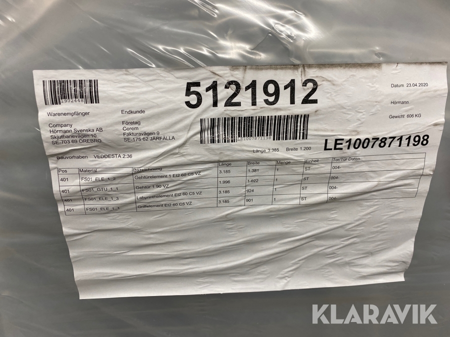 Boka frakt? Det finns ingen specifik information om frakt för just det här objektet, men om du skickar oss en förfrågan via vårt fraktformulär, så undersöker vi möjligheten. Paket, EU-pall eller större maskin? Klaravik har fraktavtal med Schenker och i de fall vi kan hjälpa till med frakt gäller det objekt som ryms i paket eller inom en EU-pall (upp till 120*80 cm och 990 kg). Det går att beställa frakt inom Sverige, dock inte till utlandet. Vid frakt på större maskiner rekommenderar vi gärna transportföretag som du kan kontakta.