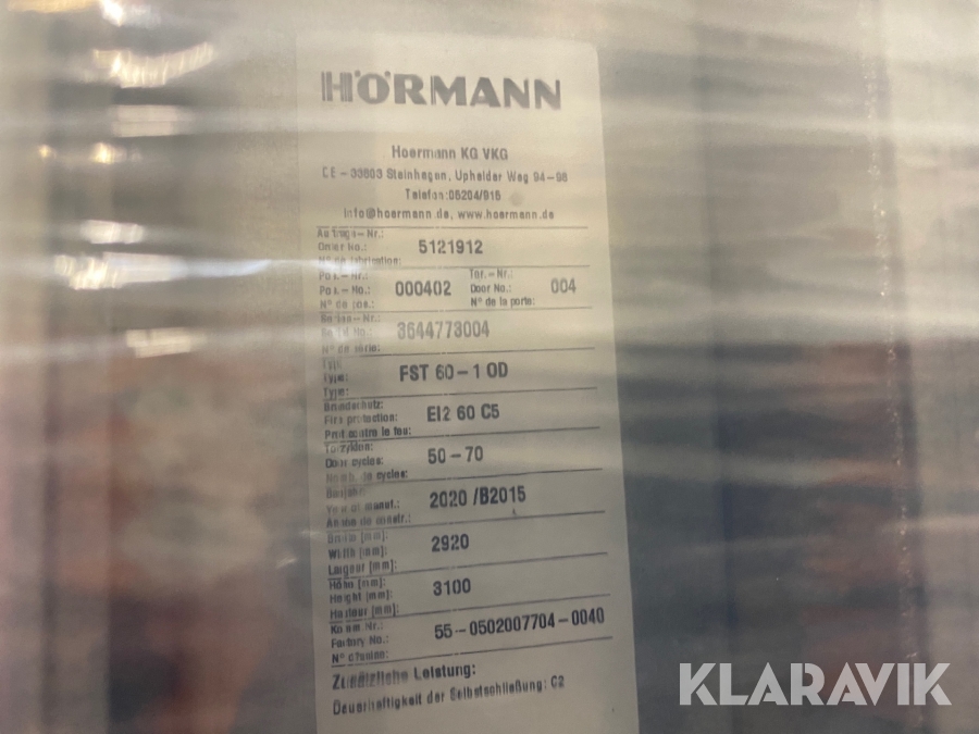 Brandskyddsport Hörmann FST 60-1 stål