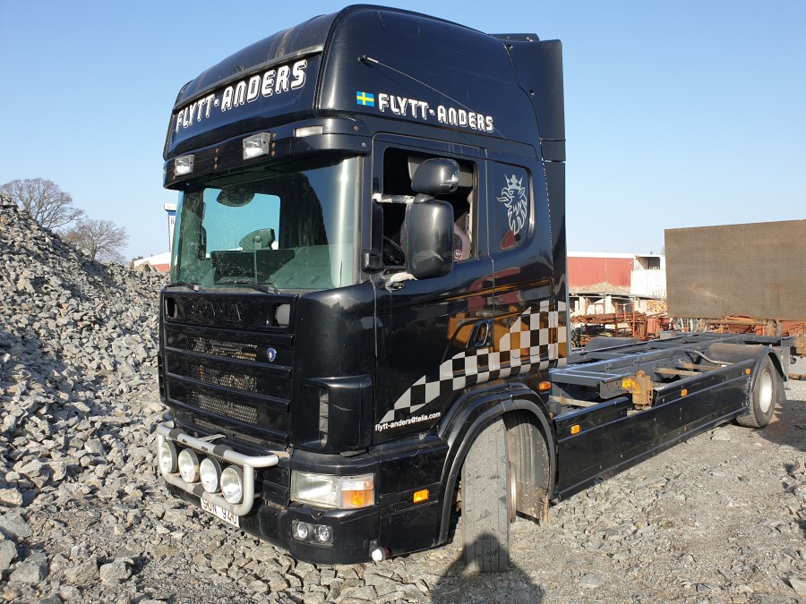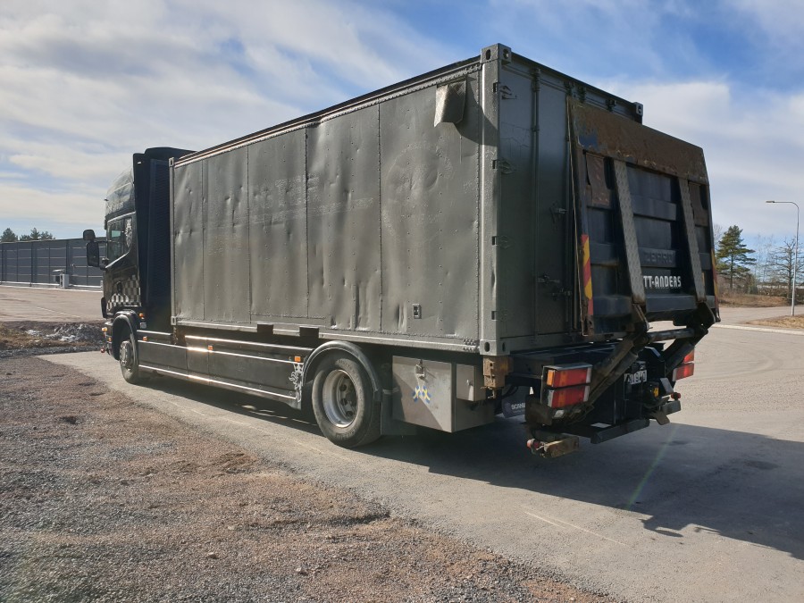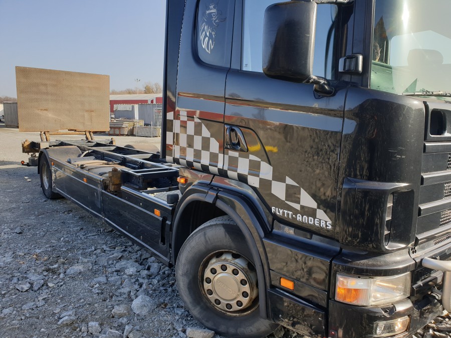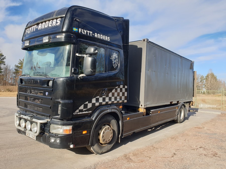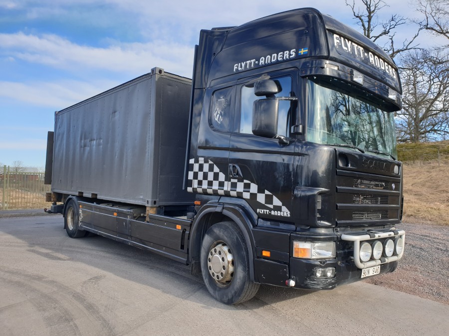 Containerbil med bakgavelhiss SCANIA R114 4X2