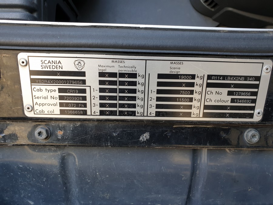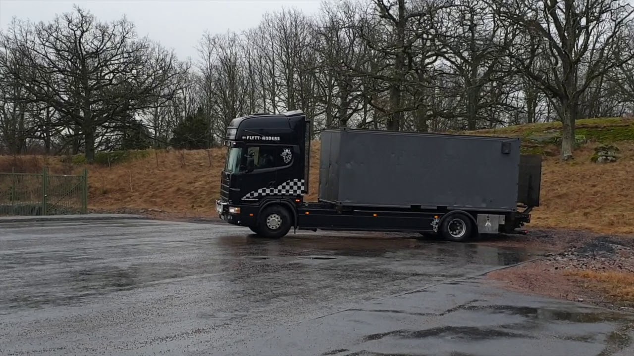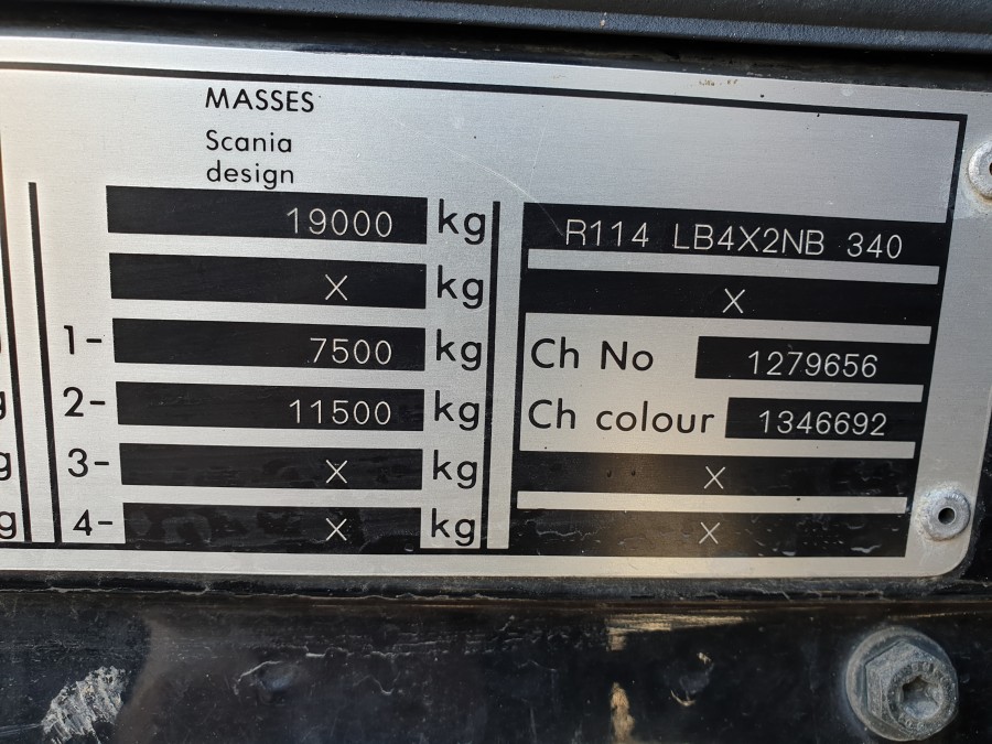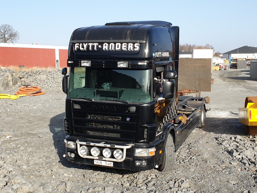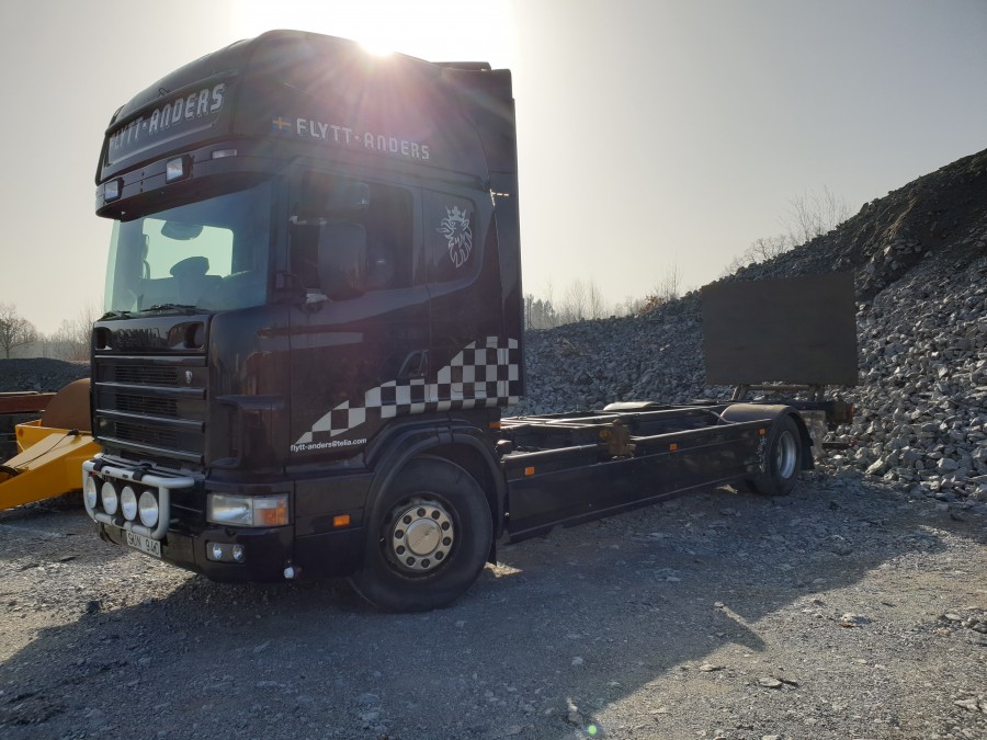 Containerbil med bakgavelhiss SCANIA R114 4X2