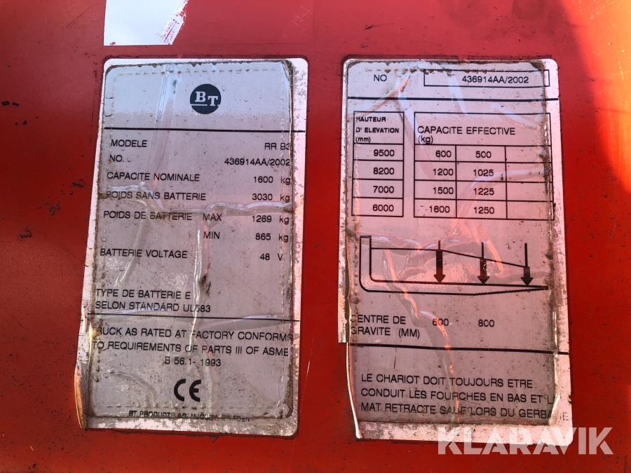 Skjutstativtruck BT RR B3 med laddare