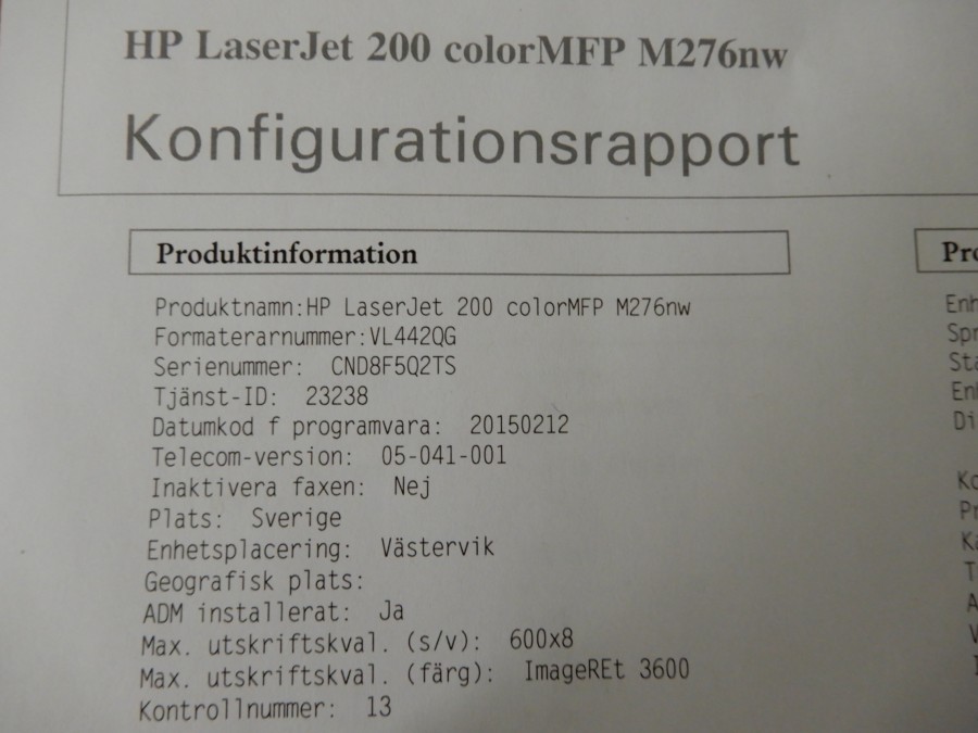 Skrivare/kopiator/scanner, HP Laser Jet Pro 200 M276dw.