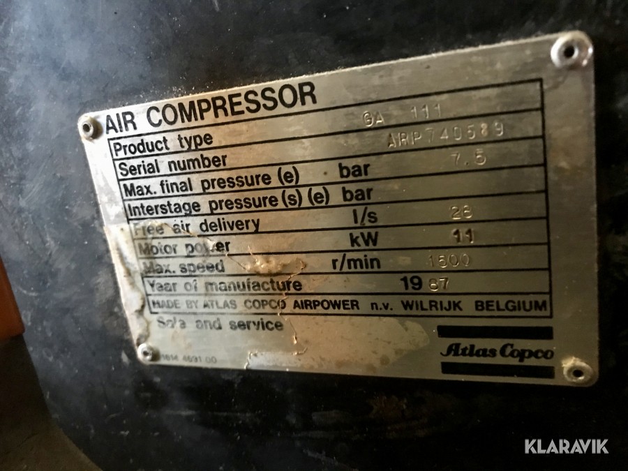 Skruvkompressor med Kyltork och Tank