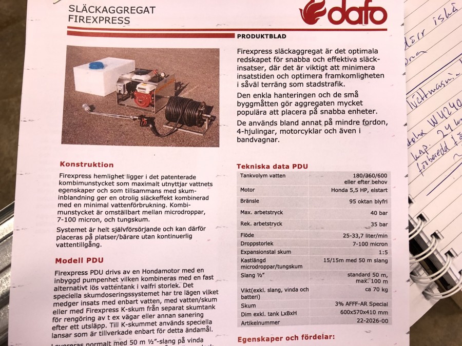 Släckaggregat med slangvinda.