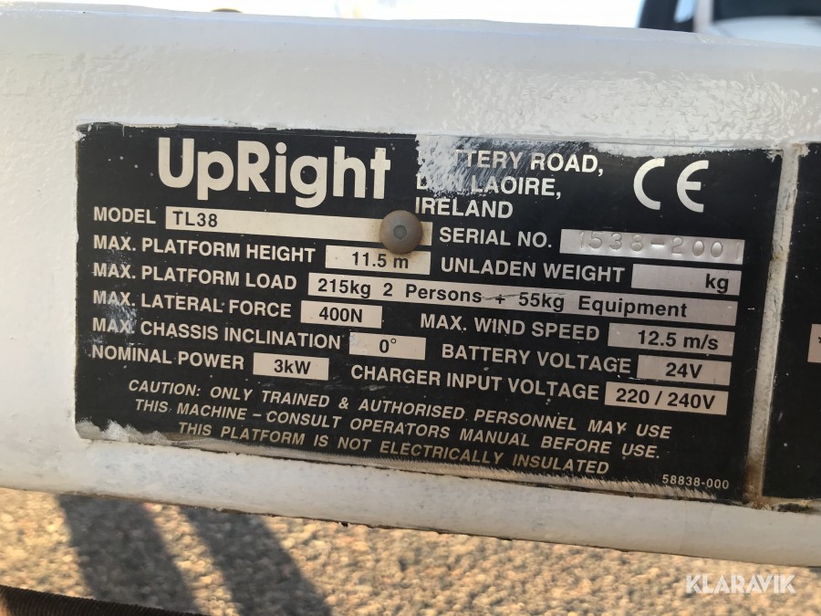 Släpvagnslift Upright TL38