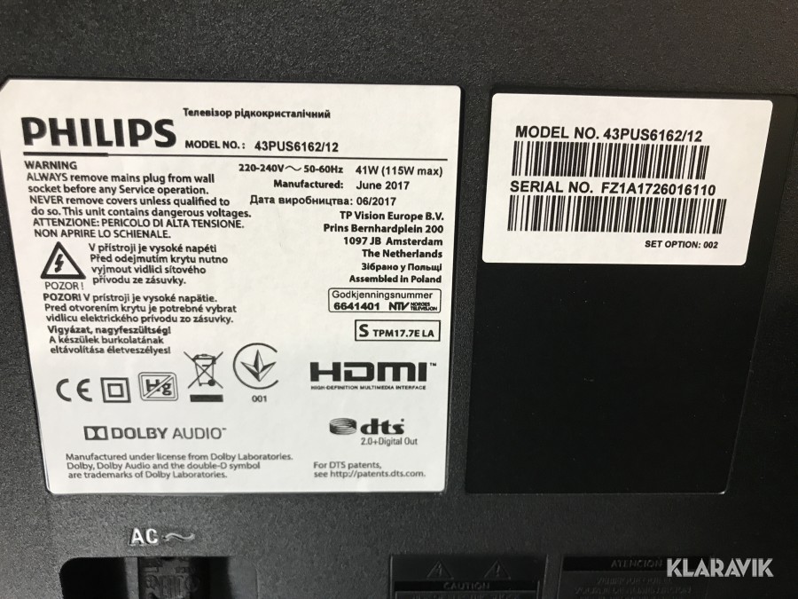 Philips tv inkl. stativ på hjul.