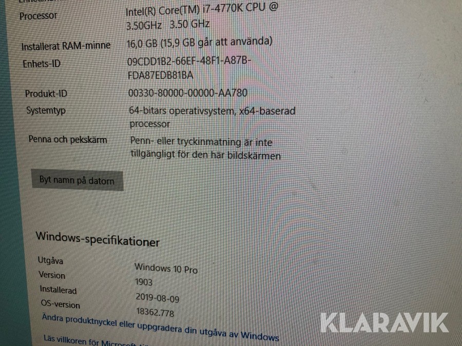Win 10 Pro (ominstallerad)