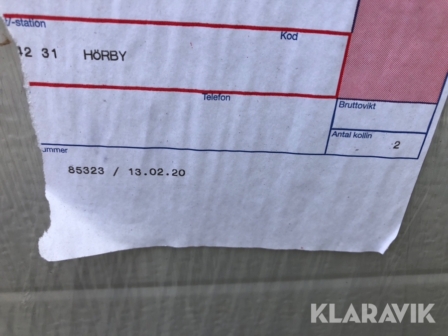 Boka frakt? Det finns ingen specifik information om frakt för just det här objektet, men om du skickar oss en förfrågan via vårt fraktformulär, så undersöker vi möjligheten. Paket, EU-pall eller större maskin? Klaravik har fraktavtal med Schenker och i de fall vi kan hjälpa till med frakt gäller det objekt som ryms i paket eller inom en EU-pall (upp till 120*80 cm och 990 kg). Det går att beställa frakt inom Sverige, dock inte till utlandet. Vid frakt på större maskiner rekommenderar vi gärna transportföretag som du kan kontakta.