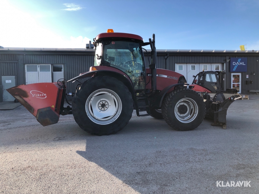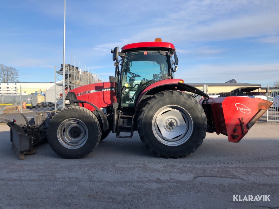 Traktor Case MXU110 med snöredskap (vikplog och sandspridare)
