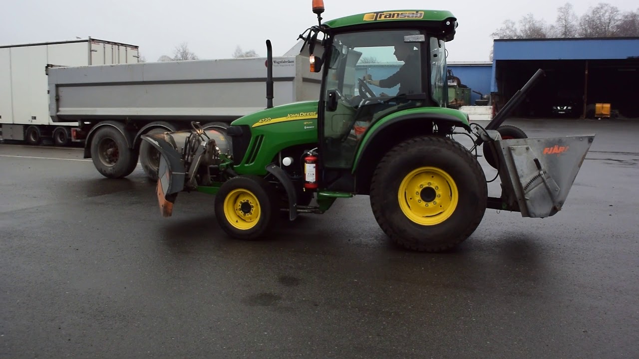 Traktor med plog och sandspridare