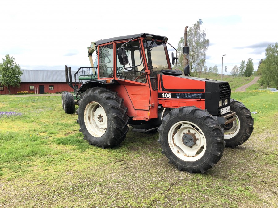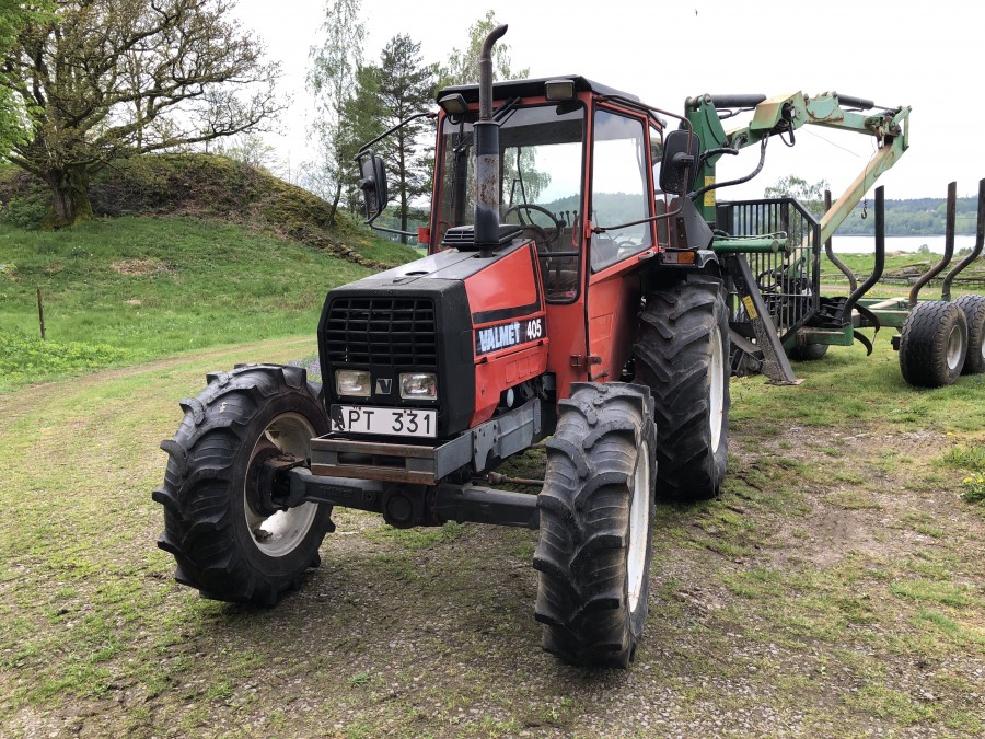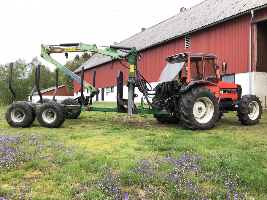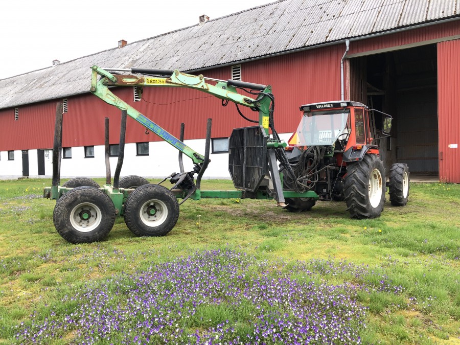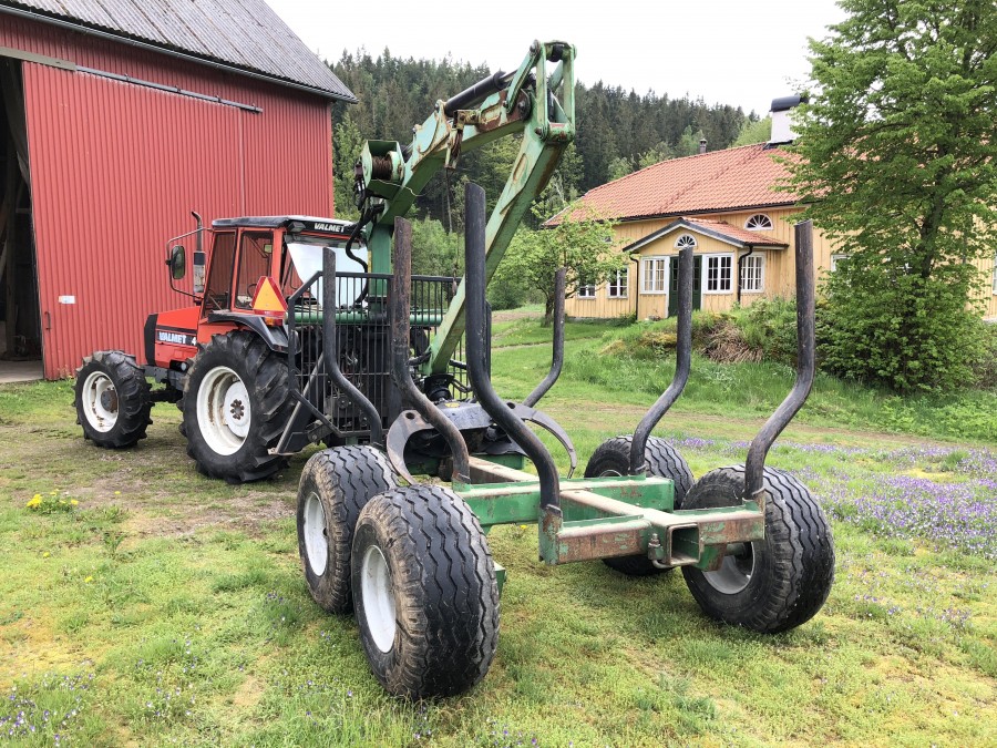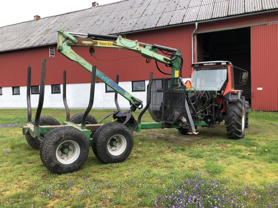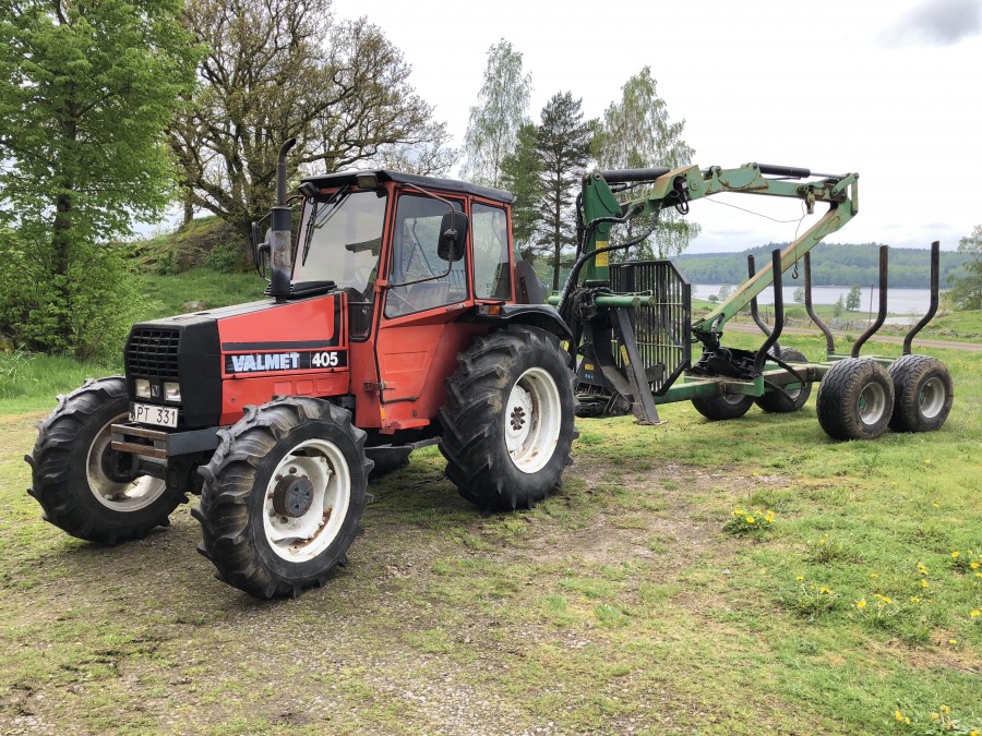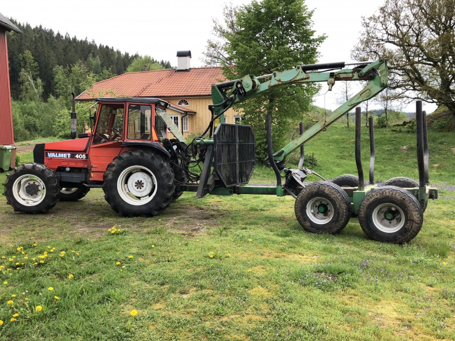 Traktor med skogsvagn Valmet 405-4
