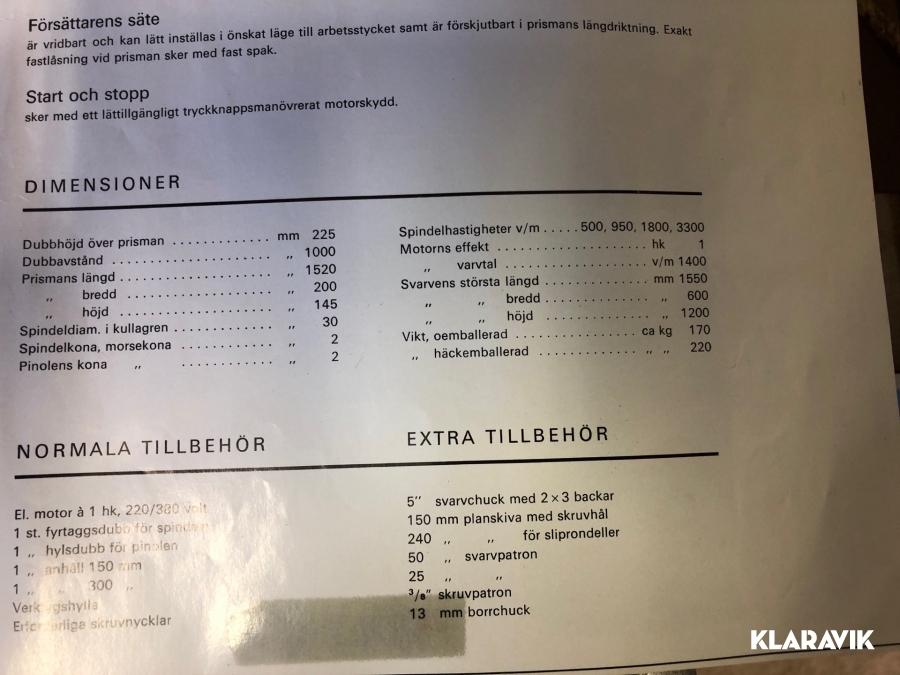 Boka frakt? Det finns ingen specifik information om frakt för just det här objektet, men om du skickar oss en förfrågan via vårt fraktformulär, så undersöker vi möjligheten. Paket, EU-pall eller större maskin? Klaravik har fraktavtal med Schenker och i de fall vi kan hjälpa till med frakt gäller det objekt som ryms i paket eller inom en EU-pall (upp till 120*80 cm och 990 kg). Det går att beställa frakt inom Sverige, dock inte till utlandet. Vid frakt på större maskiner rekommenderar vi gärna transportföretag som du kan kontakta.