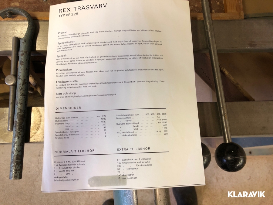 Träsvarv Rex Vf225 med kopieringsaggregat