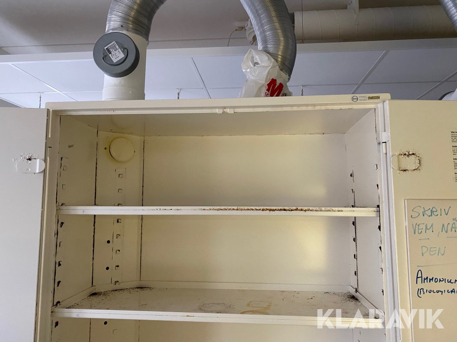 Skåpet är försett med ventilationskanal med utsugspunkter som gör att mellanrummet mellan alla hyllplan ventileras